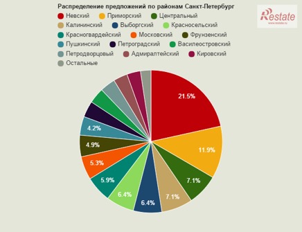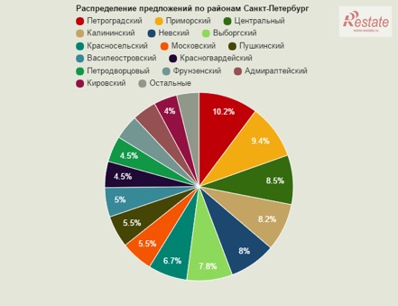 По собственным данным Restate.ru, Петроградский район в январе стал лидером по объему предложения на «вторичном» рынке. На Петроградке расположены 10,2% всех квартир, выставленных на продажу. Этот показатель выше, чем у самых популярных «спальных» районов. Сверхпопулярный прежде Приморский район смог удержаться лишь на второй позиции, там реализовывается 9,4% квартир. Причины две: активная застройка в последние годы и стремление покупателей-инвесторов вернуть себе реальные деньги.