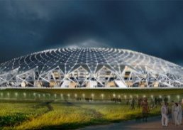 Известно, что на данный момент стадион имеет оконченный фундамент. Монолитные работы завершены на 80%. В ближайшее время будет производиться монтирование купола и сборка деталей для защиты от осадков.